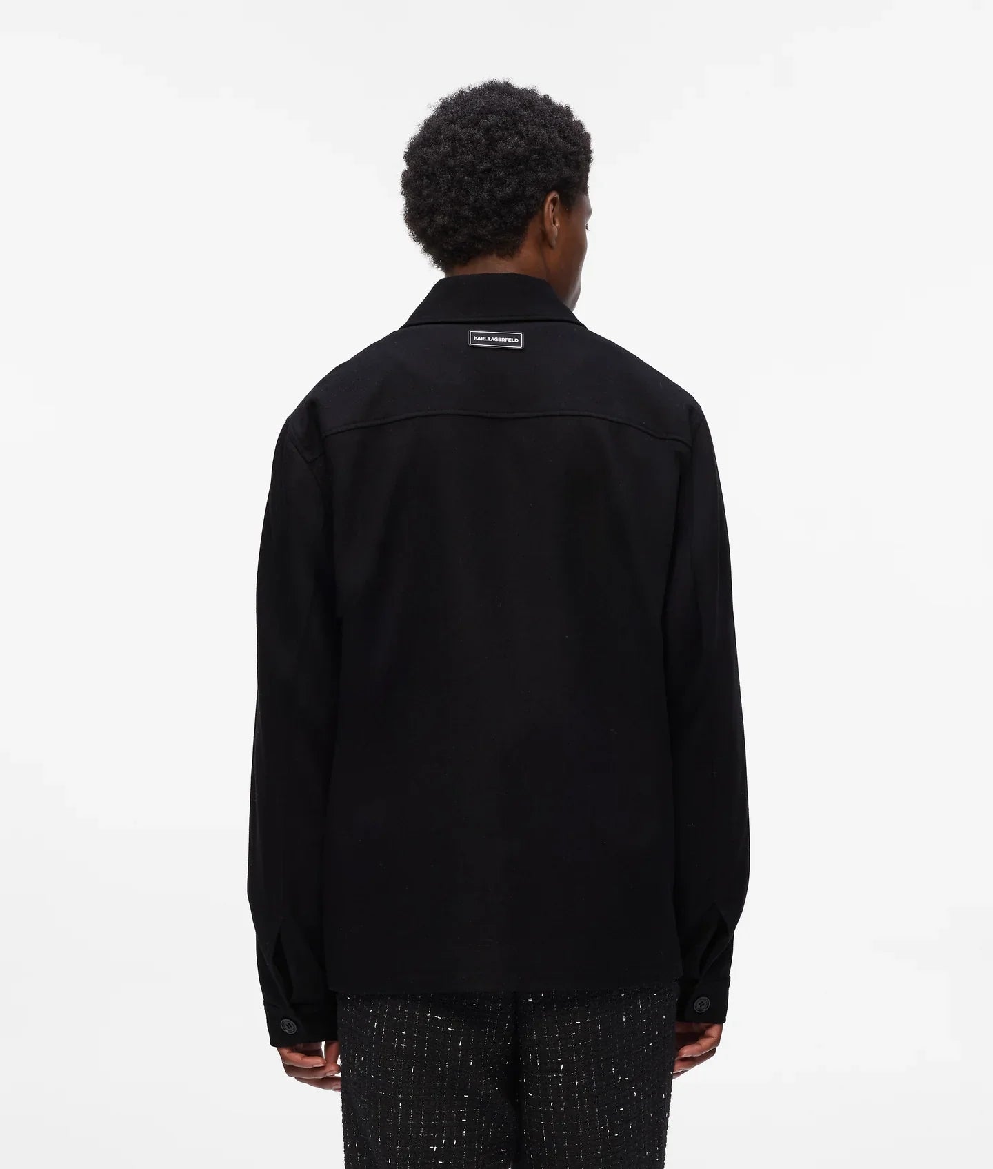 Perfect for easy layering, this lightweight, wool-blend jacket features a classic button front and pointed collar. Flap and zipped pockets offer practicality and style, accented by a KARL LAGERFELD silicone patch at the back.
