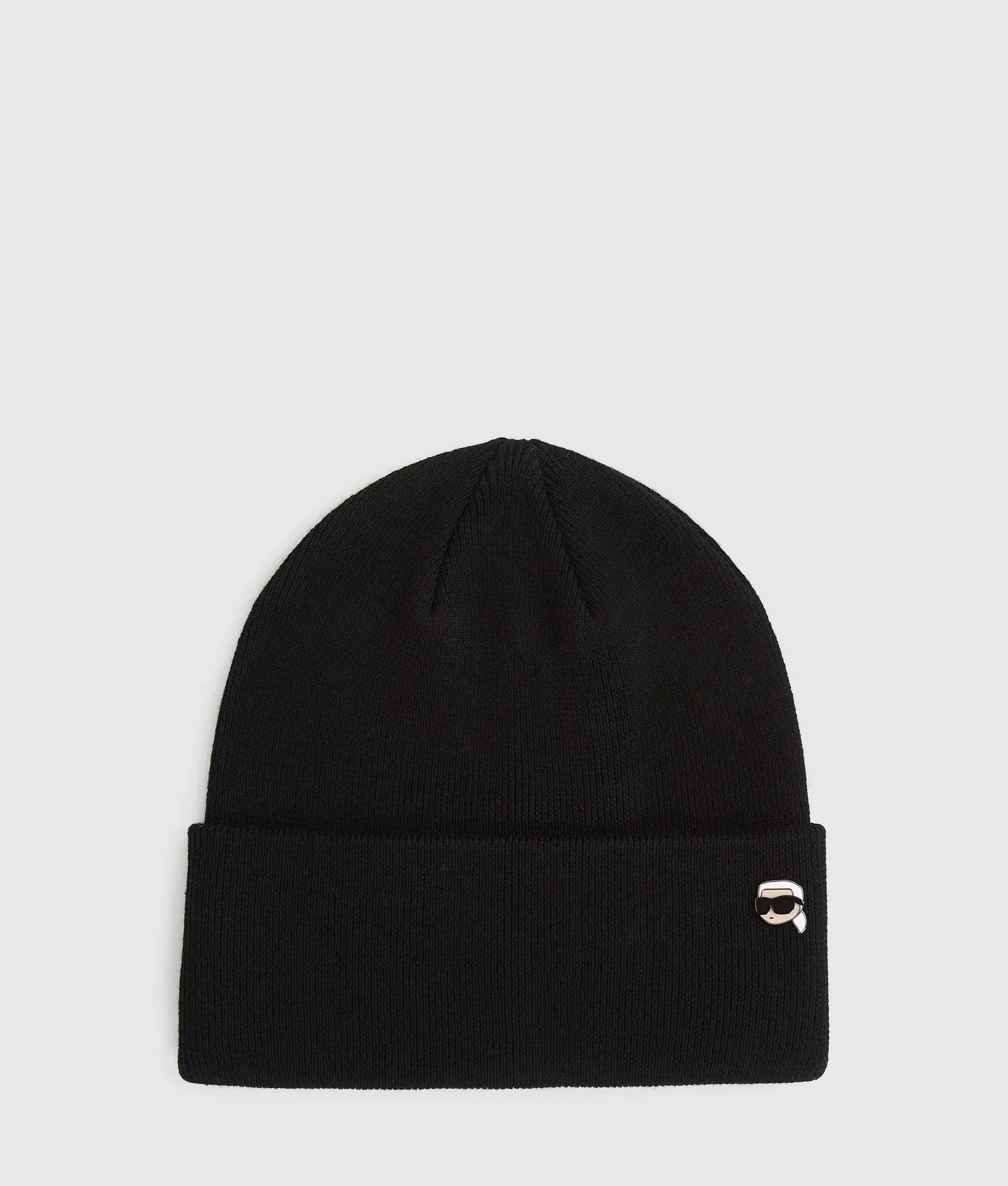A playful twist on a classic, this knitted beanie features a stylish folded brim and a charming Ikon Karl pin at the front. The contrasting KARL LAGERFELD logo at the back adds an extra touch of flair, making it a must-have accessory for any casual outfit.