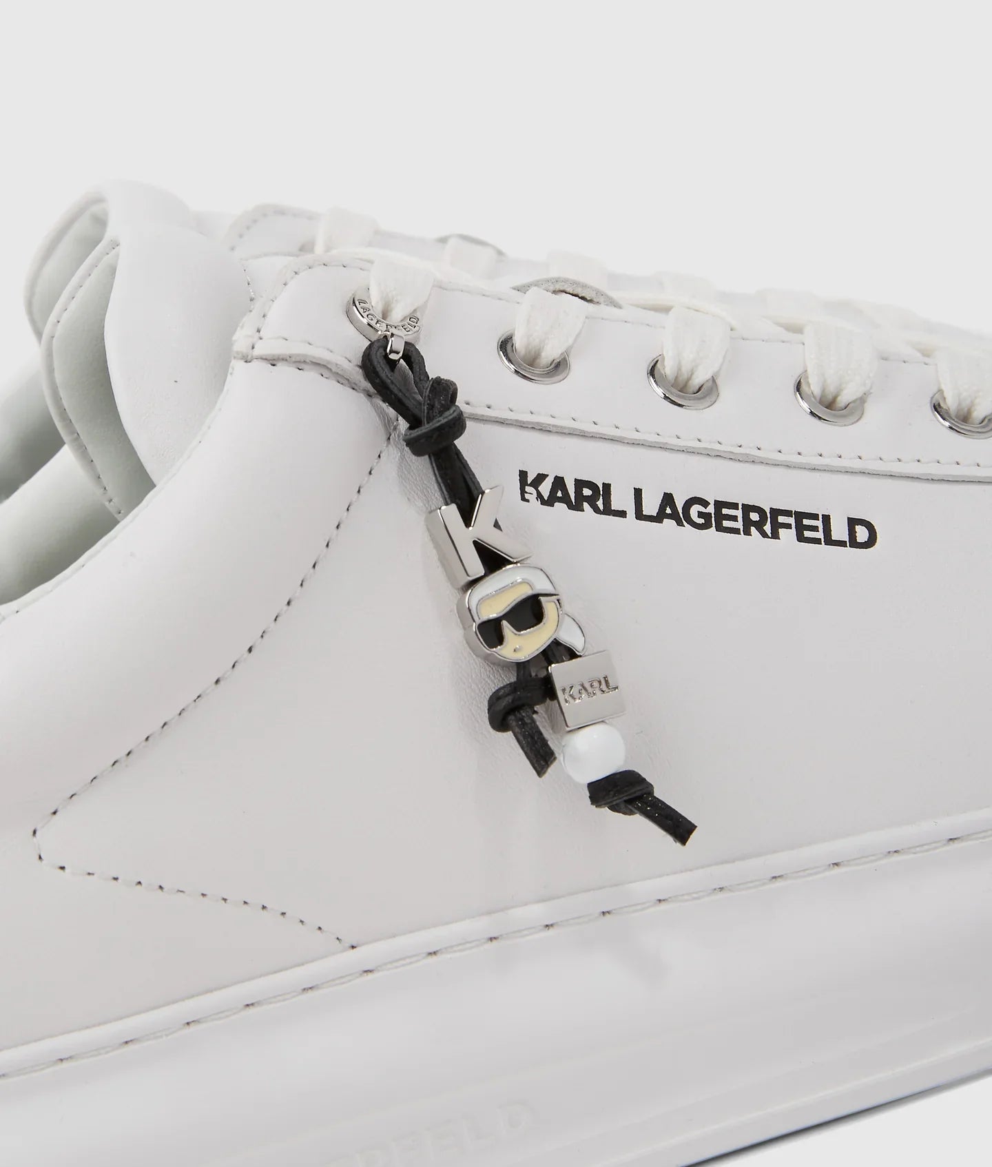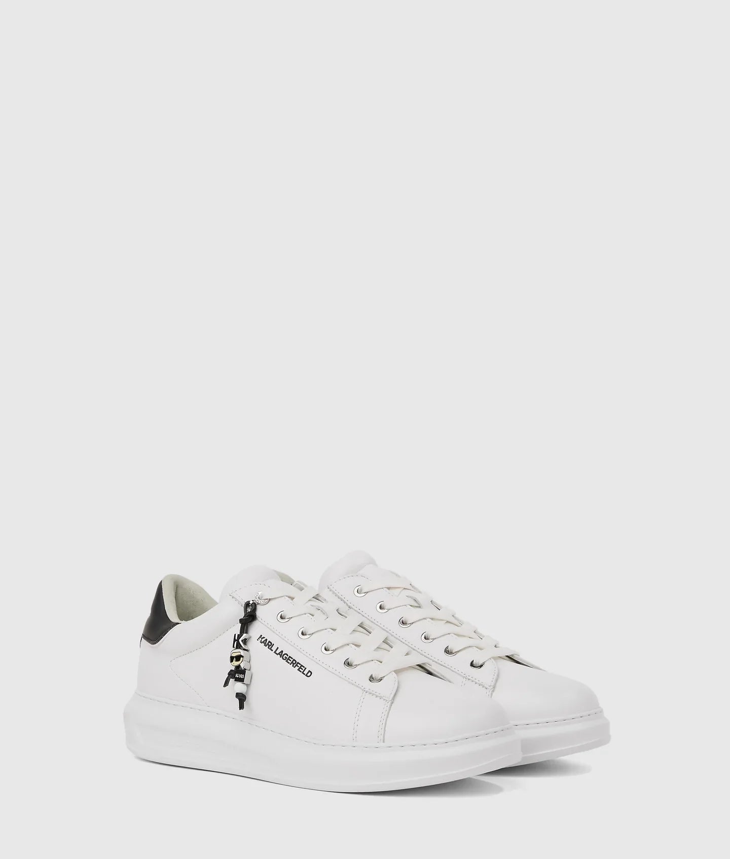 A tassel charm featuring a playful Ikon Karl motif adds a statement touch to these versatile lace-up sneakers, perfect for casual-cool styling. A subtle KARL LAGERFELD logo completes the look.