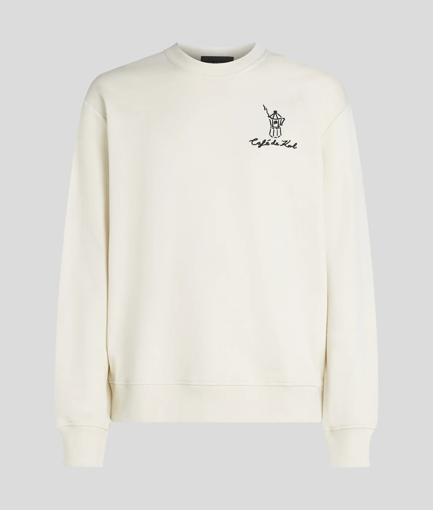 Elegance and comfort blend effortlessly in this special-edition sweatshirt, co-created with famed Spanish designer Jorge Parra. A relaxed silhouette and classic crew neck are complemented by charming embroidery of a moka pot and the Café de Karl artwork, offering an animated nod to Parisian coffee culture.
