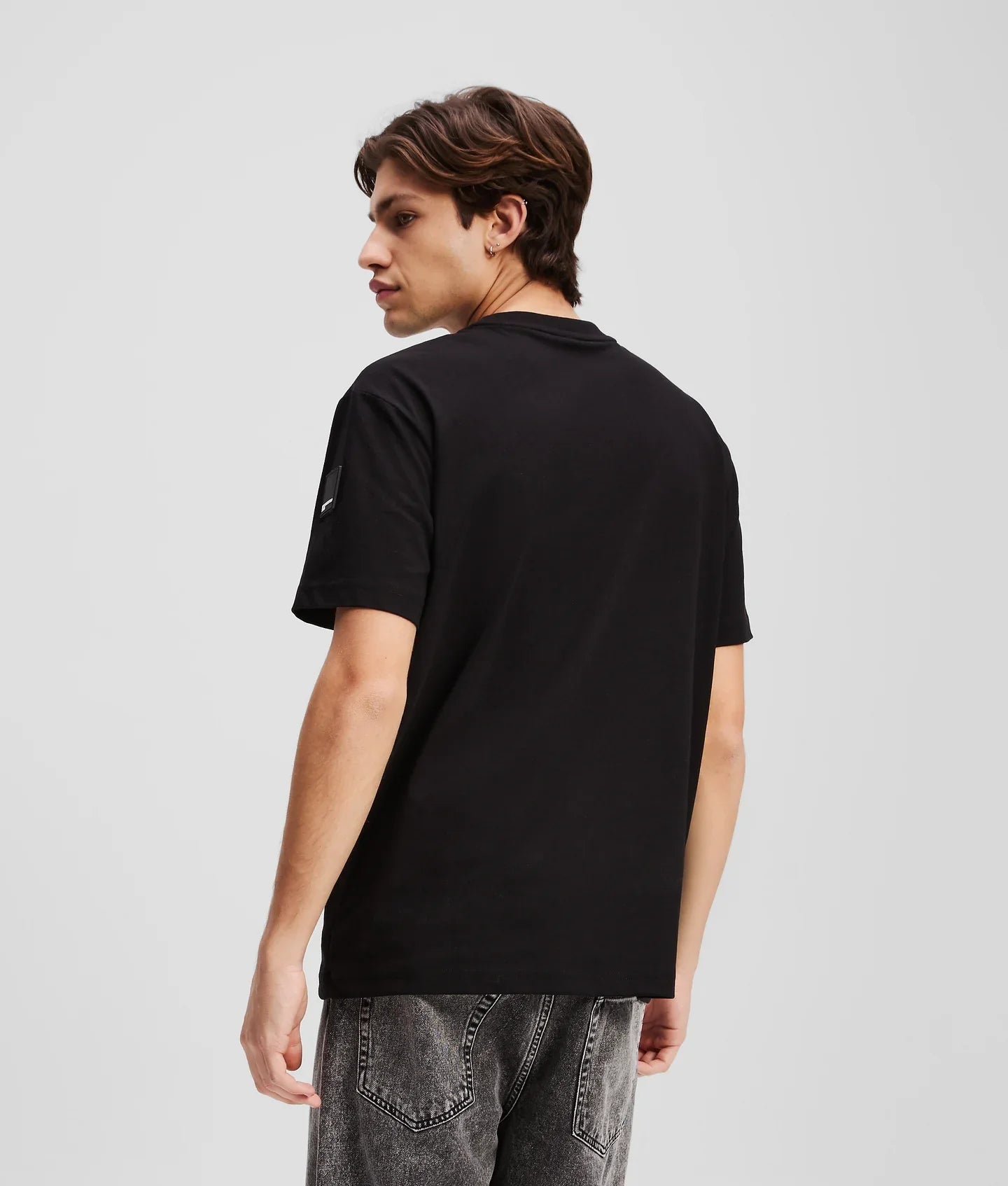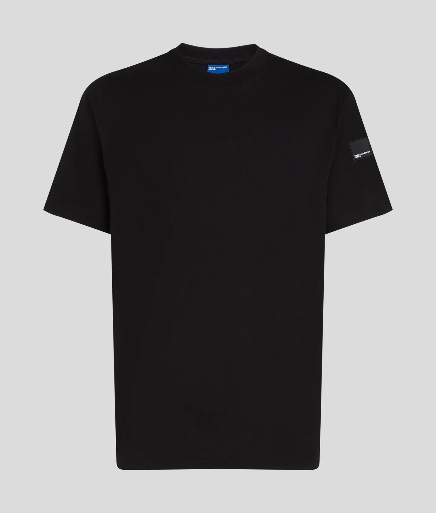 A versatile T-shirt perfect for laidback looks. The classic crew neck and short sleeves ensure comfort, while the distinctive KARL LAGERFELD JEANS silicone patch on the left sleeve adds a unique touch.